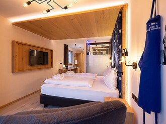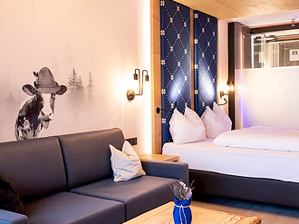 Den Wecker kannst du dir sparen – einfach Fenster offenlassen und die Kuhglocken zeigen dir, wenn es Zeit für das täglich inkludierte Frühstück ist. Im hoteleigenen Restaurant trifft Altbekanntes auf Ausgefallenes und in der Bar Einheimischer auf Globetrotter. Lustige Sprüche der beiden Gastgeber gehen aufs Haus. Und a Schnapsl natürlich auch!