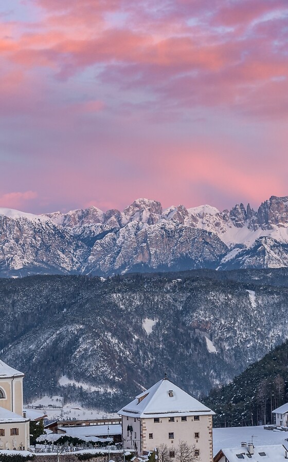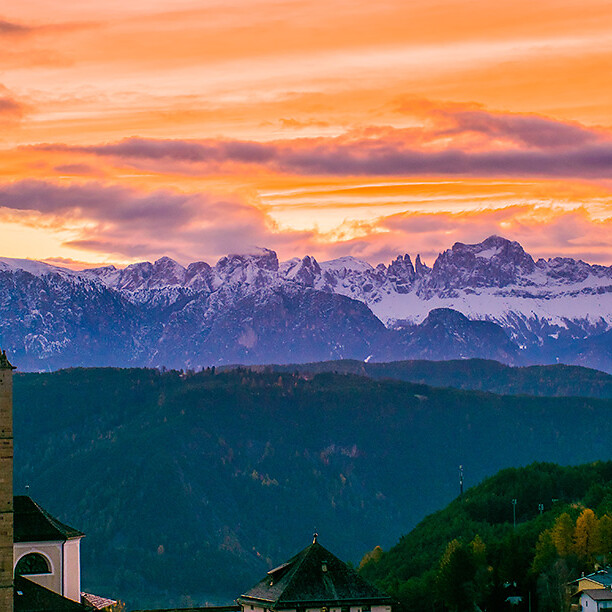 Wir stehen nicht auf Werbefloskeln wie “Zum Greifen nah”. Aber es stimmt nun mal. Rosengarten, Schlern und Co. begleiten dich bei uns überall. Besonders der Sonnenuntergang macht etwas her. Dann glühen die sonst “bleichen Berge” in zauberhaften Orange-, Rot und Rosatönen.
